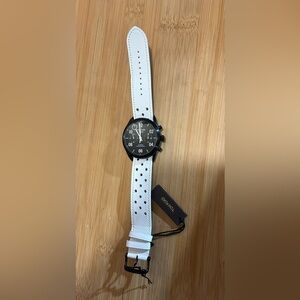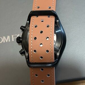 Tom Ford N002 Automatic Watch With 43mm Black Face & White Leather Band