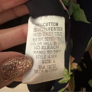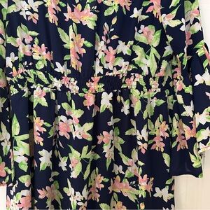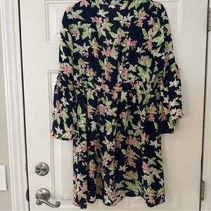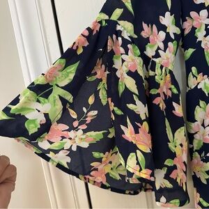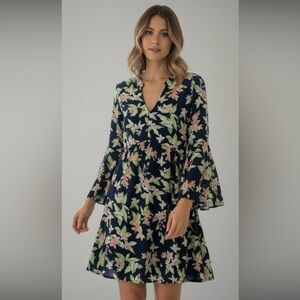 Umgee Navy Floral Boho Bell Sleeve Dress Large