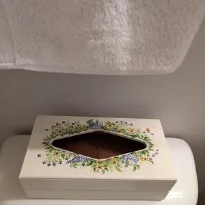Hand-painted tissue holder.