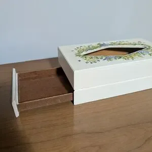 Vintage Wooden Hand-painted Tissue Box with Drawer.