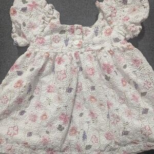 This is so precious. It has some faint brown staining as shown in the third picture. It's hard to see unless you are up close and may be able to be spray treated. No other stains seen and no holes. Size 12-18 months.