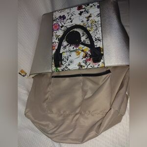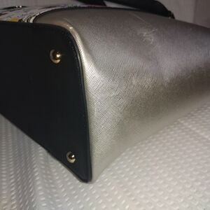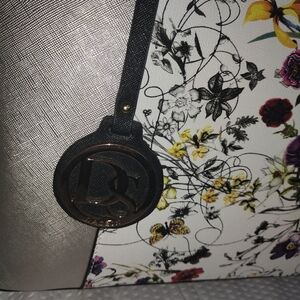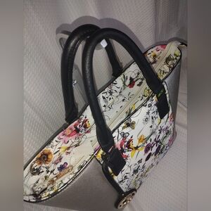Elegant women's tote bag featuring a vibrant floral design. The silver and black accents add a touch of sophistication. Perfect for any occasion.