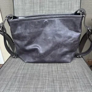 Elegant gray rough and tumble Leather Shoulder Bag Hartley in concord