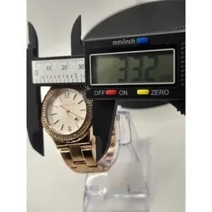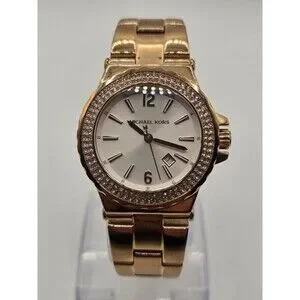 This pre-owned MK watch is in good condition overall. The crystal has no scratches. New battery installed and running well. Please note the band has sold rose gold fading on about 4 links/20% of the band. See photos.