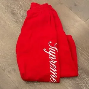 Vibrant red sweats with iconic Supreme logo. Purchased from GOAT