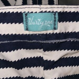 Thirty-One Striped Hobo Bag - Navy, White, and Teal