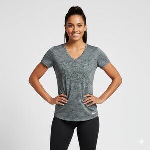 Nike Dri-FIT Heathered Gray V-Neck Training T-Shirt Women’s Medium