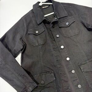 DG2 Diane Gilman Black Denim Jacket Size XL Trucker Style Stretch Pockets