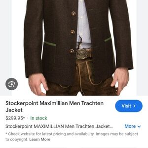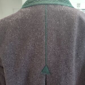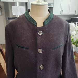 Stylish brown jacket featuring green accents and Perfect for formal occasions good used condition Germany one tiny hole on sleeve end minor