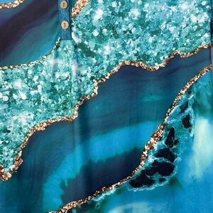 Beach Ocean Blue Top Marbled V Neck Short sleeve Women Turquoise Teal Plus 2XL