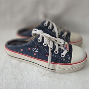 Vintage Y2K Skechers Women’s Chunky Platform Slip On American Flag Sneakers Sz 8
