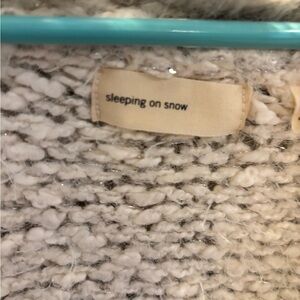 Anthropologie Sleeping on Snow Venla Fluffy Faux Fur Cardigan From the Anthropologie archives, a classic from Sleeping on Snow. If you know, you know. Size Small! Fluffy faux fur collar Cream with gray and silver Silver Metallic thread woven throughout Loose chunky knit Hook and eye closure Front Pockets