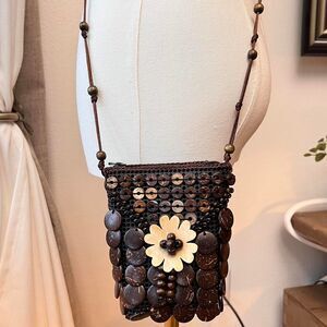 Handcrafted Coconut Shell Crossbody Bag – Boho Natural Wood Beaded Purse