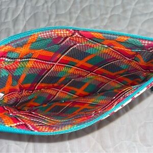 Vera Bradley red patterned clutch bag with lemon, teal trim and strap