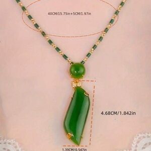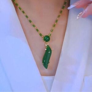 This stunning necklace features a vibrant green pendant complemented by gold accents. Perfect for adding a touch of elegance to any outfit.