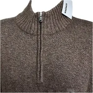 Elevate your wardrobe with the NEW Sonoma Men's Super Soft Knit 1/4 Zip Sweater. This light brown sweater is perfect for casual occasions and can be easily paired with your favorite jeans or chinos. The tight-knit fabric type and cotton blend material provide a comfortable and warm feel, making it an ideal choice for the winter and fall seasons.