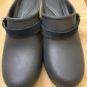 Crocs Sarah Dual Comfort Black in size 10 US. Leather strap with gun metal hardware. Like new in unworn condition.