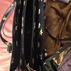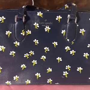 Chic navy satchel with floral pattern. Features dual handles and a detachable strap. Perfect for everyday use.The callout wear at the handle . No cancellation and Return.