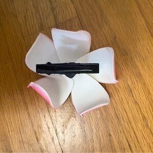 Brighten up your child's look with this charming hair accessory set. Featuring a pink and yellow floral clip, a purple candy-shaped hair tie, and a classic pearl barrette, this set adds a playful touch to any outfit.
