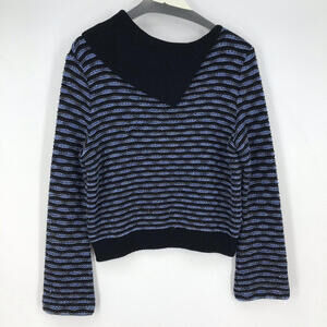 Women's St John By Marie Gray Blue/Black Striped Sweater 12