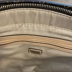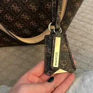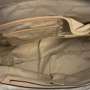 Stylish and spacious, this Guess tote bag features a chic brown and tan design. Perfect for everyday use, it combines fashion with functionality.
