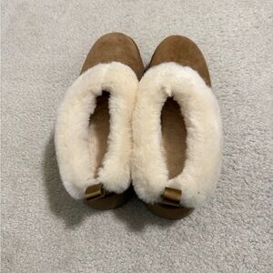 Step into comfort with these stylish tan shoes, featuring a plush faux fur lining. Perfect for keeping your feet warm and fashionable.