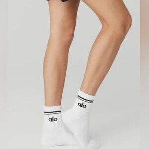 2 pack Alo Yoga Unisex Half-Crew Throwback Sock White Black
