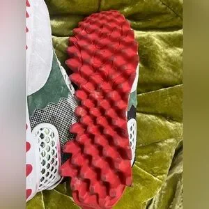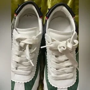 Trendy sneakers with a white and green design. Perfect for casual wear.