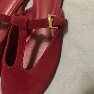 Zara Women's Red Suede Mules with Gold Buckle