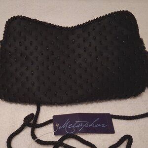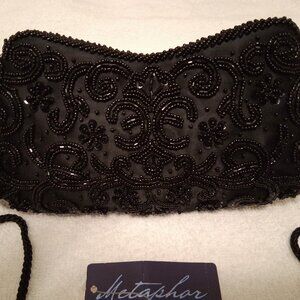 Metaphor Vintage Black Beaded Formal Evening Clutch Bag with Mirror EUC