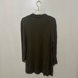 STUDIO WORKS | Open Front Cardigan, 3/4 Length Sleeves, Olive Green, Size Medium