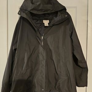 Vintage L.L. Bean Trail Model Raincoat Classic black utility jacket with hood. Durable and stylish for everyday wear. Like New Clean Smoke-free Pet free Home