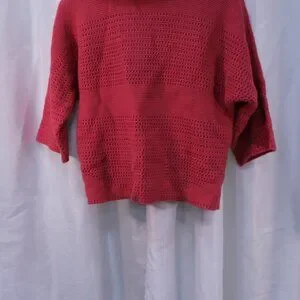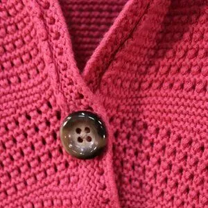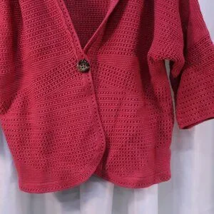 Chic coral cardigan with a single button front. Features a textured knit pattern. Ideal for layering.