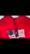 Bold red hoodie with American flag design. Classic Polo style. Ideal for casual wear.