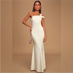 Lulu's White One-Shoulder Mermaid Maxi Dress