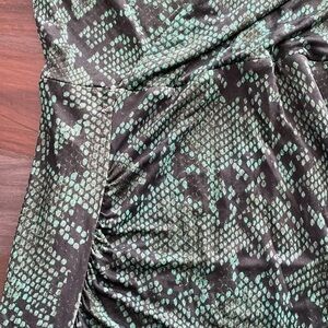 Green snake printed sheath makes this Atlein dress sleek and sexy.