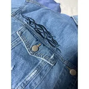 209 Current Mood Cropped Distressed Denim Jacket Graphic Blue Women’s 3X
