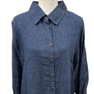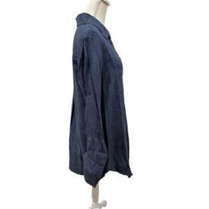 Flax 100% Linen Dark Chambray Long Sleeve Button Up Linen Shirtdress