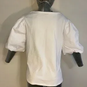 Stylish white tee with puff sleeves. Perfect for casual wear. Soft and comfortable fabric.