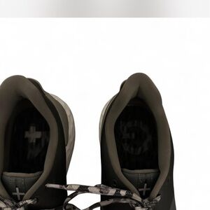 Stylish black sneakers with unique patterned laces. Perfect for casual wear.