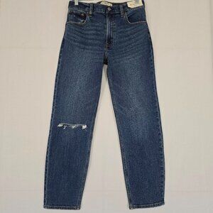 Abercrombie & Fitch High Rise Mom Jeans 27 Blue Distressed NWT