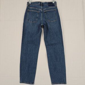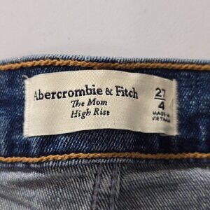 Abercrombie & Fitch High‑Rise Mom Jeans 27 Blue Distressed mid wash; Vintage-inspired for a Y2K, ’90s, retro street, relaxed nostalgia, soft grunge look. Tuck in a cropped tee — wear these to brunch or a casual concert.
