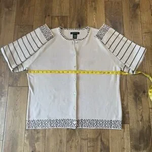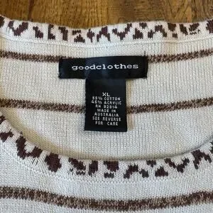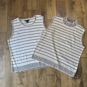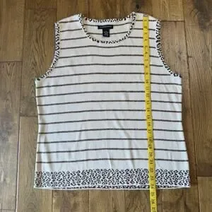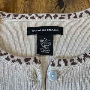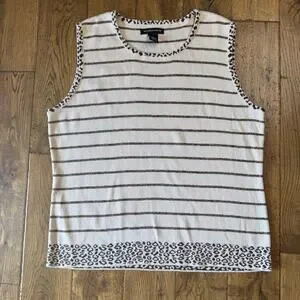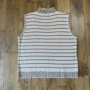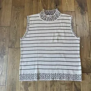 VTG 90s Goodclothes 3 pc Cardigan And Tank Cream Brown Leopard Stripe Set Sz XL