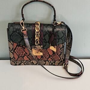 ALDO Glendaa Snakeskin Patchwork Crossbody Satchel Purse with Gold Chain