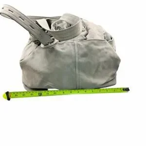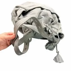 Ann Taylor LOFT Gray Leather Drawstring Shoulder Bag Tassel Slouchy Tote