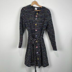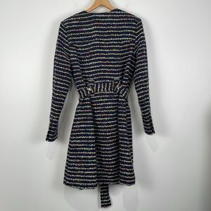 CAbi Coat Headline Topper Belted Women’s 10 Multi-Stripe Lined Thigh Length