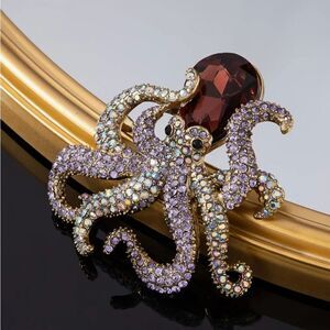🐙 HEIDI DAUS gorgeous [1pc Vintage Nautical Brooch Pin] Vintage Nautical Octopus Brooch Pin, Copper Alloy, with Glass Mosaic & crystal Accents Elegant with Beautiful colors. Maritime-Inspired Fashion Accessory for Daily and Formal Wear. Lots of stunning sparkle. Authentic stamped 🐙