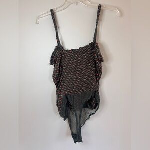 INTIMATELY FREE PEOPLE ruched floral mesh bodysuit teddy dark floral boho whimsigoth fairy grunge size M