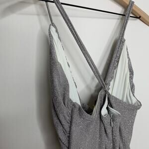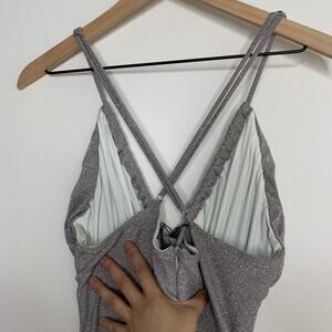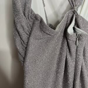 Patbo Lurex Cut Out Maxi Lace Up Dress Silver Sparkle Womens Glamorous Size 10