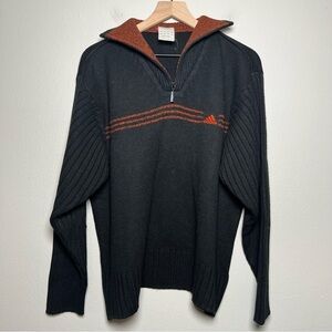 VTG 90s Adidas Men Sweater Large Japan Black Orange Thick Knit Stripe 1/4 Zip
